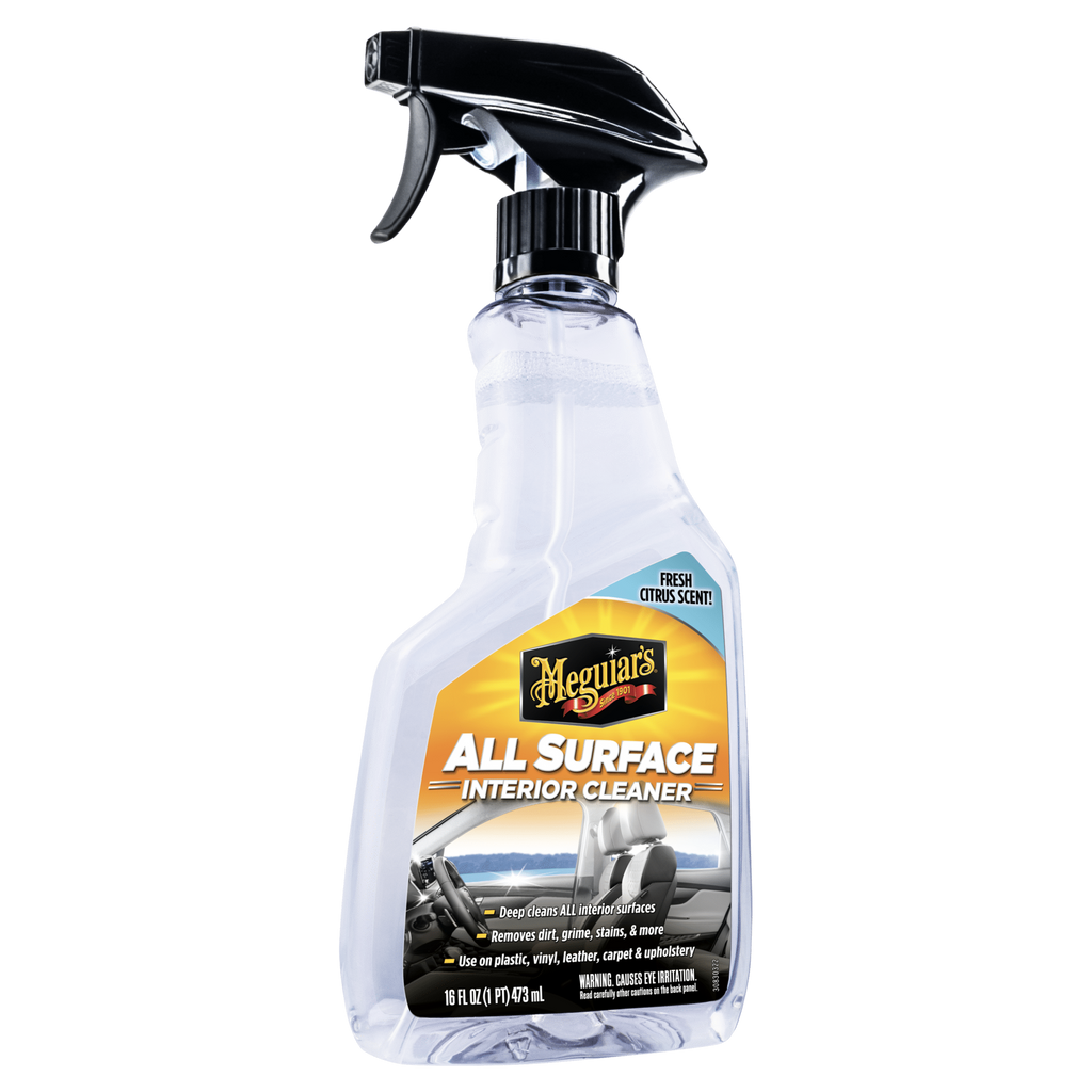 Meguiar’s® All Surface Interior Cleaner är designad för att djuprengöra alla ytor i ditt fordon. Tar bort smuts från vinyl, läder, gummi och plastytor. Avlägsnar fläckar från mattor, klädsel och annan textil. Samtidigt som den är tufft mot smuts är den även skonsam nog att användas för rengöring på regelbunden basis.