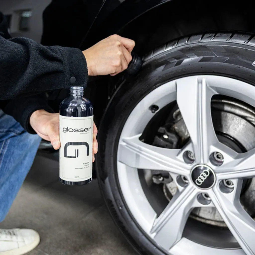 Black Out återställer inte bara däckens djupa svarta färg, utan ger också en hög, glänsande yta som håller i flera veckor. Medlet tränger in i däcket och mättar materialet så att du får ett skyddande resultat med lång hållbarhet. Perfekt för att ge dina däck en ny och välvårdad look. Vår däckglans är inte bara effektiv – den är också skonsam mot däckens ytor och material. Om produkten skulle komma i kontakt med fälgar, plast eller lack, orsakar den inga skador. Den är säker att använda på alla ytor, vilket gör appliceringen enkel och bekymmersfri. Med sin dryga formula räcker en liten mängd långt, vilket gör Black Out både ekonomisk och hållbar. Upplev den perfekta glansen och skyddet för dina däck med Glosser Black Out!