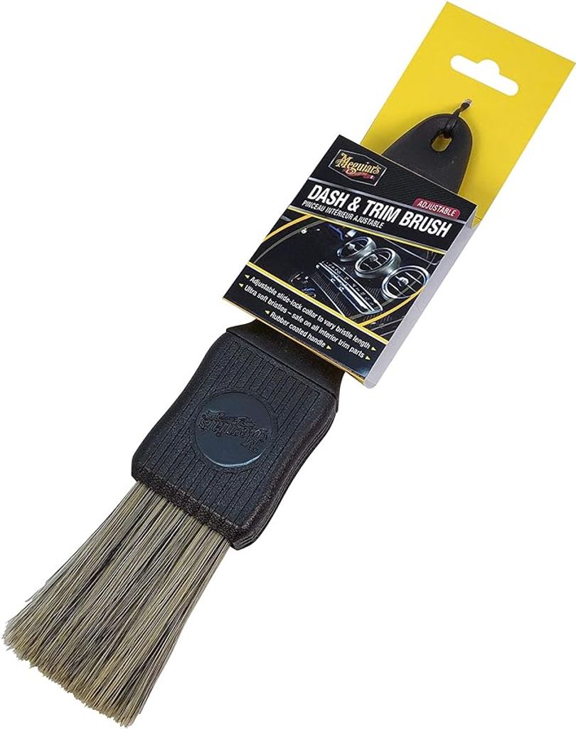 Dash & Trim Brush är en interiörborste med justerbar längd på borstens strån. Det gör att du kan använda den till både instrumentpanelen och fläktgaller samt till bilens dörrsidor, beroende på vald längd. Tack vare denna funktion slipper du köpa flera olika borstar till alla delar i interiören!