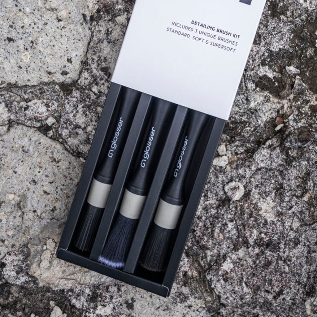 Detta är Glossers egenutvecklade, smidiga kit med 3 rengöringsborstar i varierande mjukhetsgrader, perfekt för alla dina fordonsrengöringsbehov. Med syntetiska och kemikaliebeständiga borsthuvuden säkerställer du en effektiv rengöring, även på de mest svåråtkomliga ställen där en mikrofiberduk inte når. Alla rengöringsborstar i kitet är ergonomiskt utformade för att ligga bekvämt i handen. De långsmala skaften gör dem mycket praktiska att använda. Dessutom är skaften försedda med hål, vilket gör det enkelt att hänga upp dem för torkning efter användning.