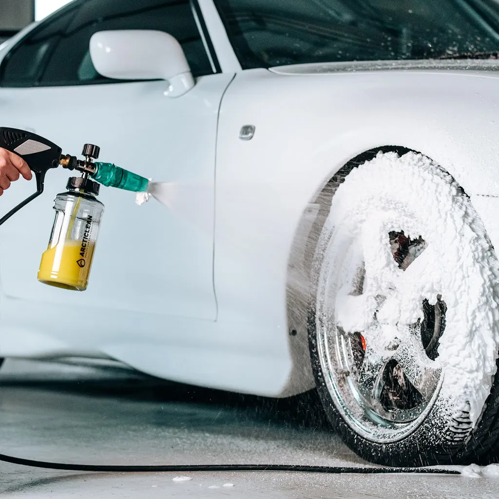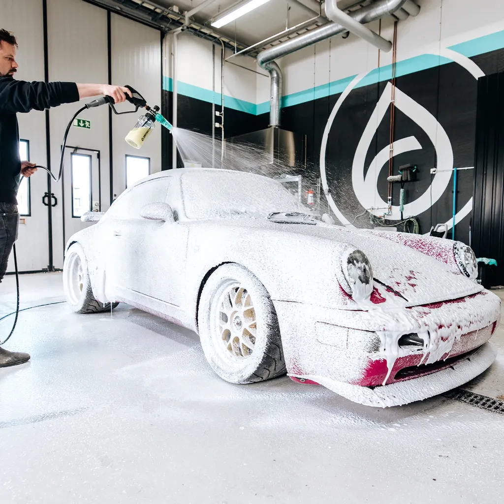 Fyll behållaren med lämpligt kem. Foam clean vid underhållstvätt, Autoclean + wax vid tvätt av svårare smuts (man kan även i Heavy duty lansen laborera och blanda dessa med våra starkare alkalier som Multi clean eller Power clean för att få mer effekt, läs instruktioner och användningsområden på dessa förpackningar innan ni börjar). Skruva tillbaks behållaren, fäst lansen på högtryckstvättens snabbfäste så är du klar att börja lägga på. Lägg noggrant på ett lämpligt lager skum och låt det verka enligt kembeskrivningen, för att sedan spola av med vatten. När du tvättat färdigt skruva av behållaren och spola ur lansen med vanligt vatten.