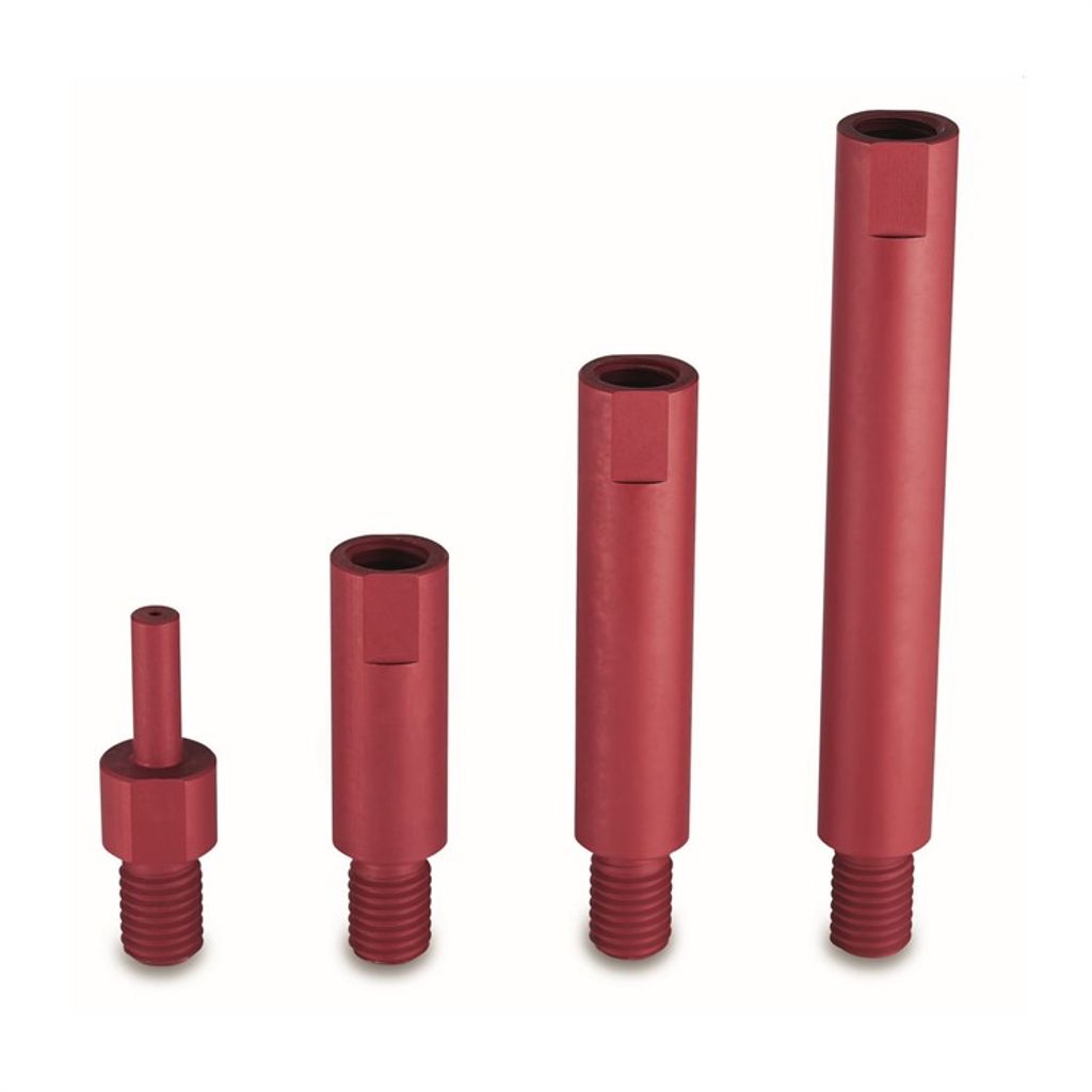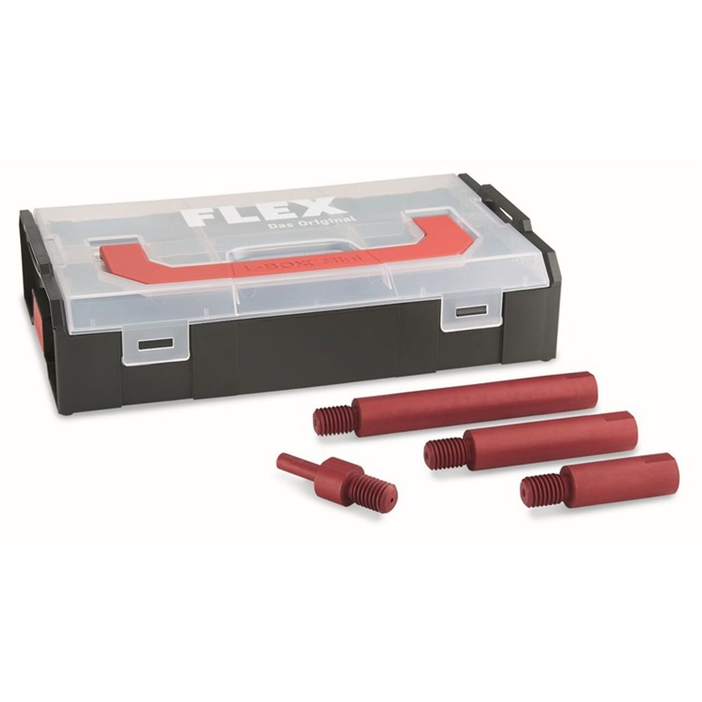 Innehåller tre M14 anodiserade aluminium förlängningar i 50 mm, 80 mm, 120 mm och en M14 adapter för batteriskruvdragare. Axel Ø 19 mm, bredd över platt SW 17, max. bakstycke Ø 75 mm, max. poleringsskiva Ø 80 mm.