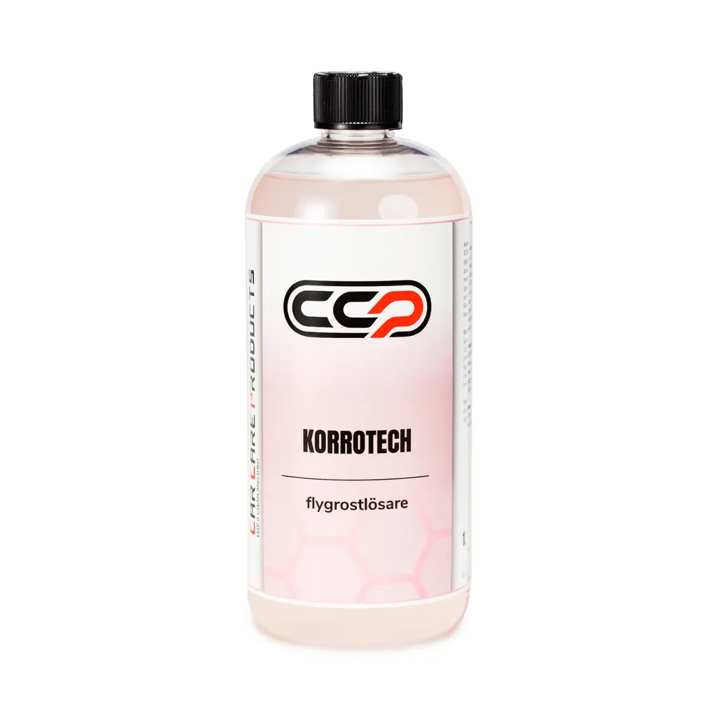 Korrotech är pH neutralt och väldigt effektivt hjälpmedel för borttagning av bromsdamm, flygrost, järnoxid och annan förorening på lack och fälgar orsakat av metallpartiklar. Dom aktiva ingredienserna i Korrotech löser upp metallföroreningar och får det att lossna från lack och andra ytor. Inga farliga syror och alkalier, den är PH-Neutral. Korrotech fungerar på alla ytor, vi rekommenderar för bästa resultat att man spolar av fordonet om det sitter tjockt med smuts innan man lägger på Korrotech så den lätt kan komma åt flygrosten. Men självklart fungerar korrotech även om du inte spolat av bilen innan men det kan ta längre tid för medlet att komma åt problemet och göra sitt jobb. Då Korrotech innehåller effektiva tensider så gör den rent ytan samtidigt som den får järnoxiden/flygrosten att släppa.