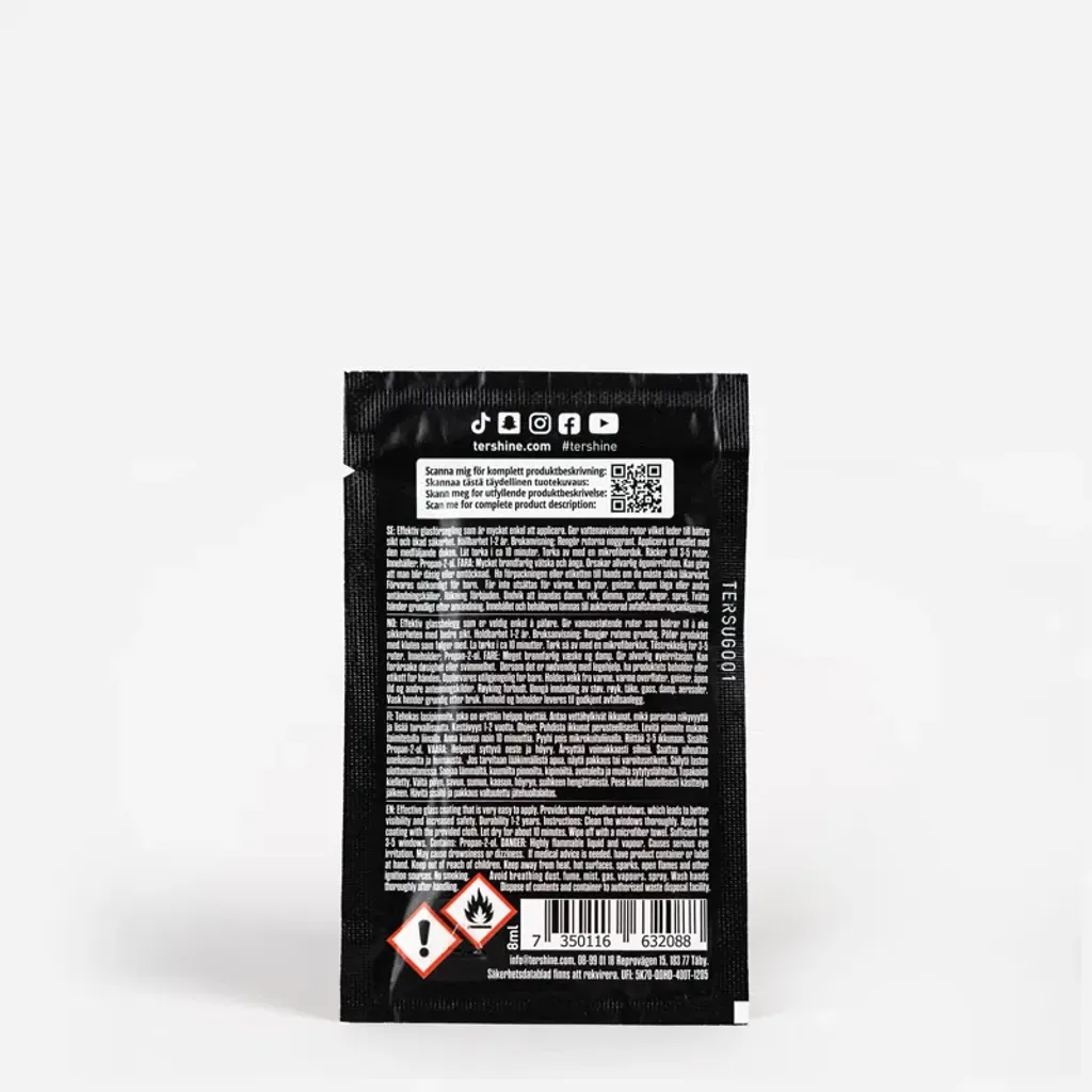 Den är inte bara episk på bilrutor utan fungerar även grym som glasbehandling på duschväggen, båten, mc-visiret, lusthuset och ja listan kan göras lång. Grymt enkelt format likt en ”savett-påse” där men river av toppen, tar ut duken och applicerar på valfri glas/plastruta, låter det torka 10 min ish och sen enkelt bara torkar av. Självklart helt fri från PFAS och andra shady saker (ja det är vanligare än vad ni tror med fluorin och andra skumma saker i glascoatingar).