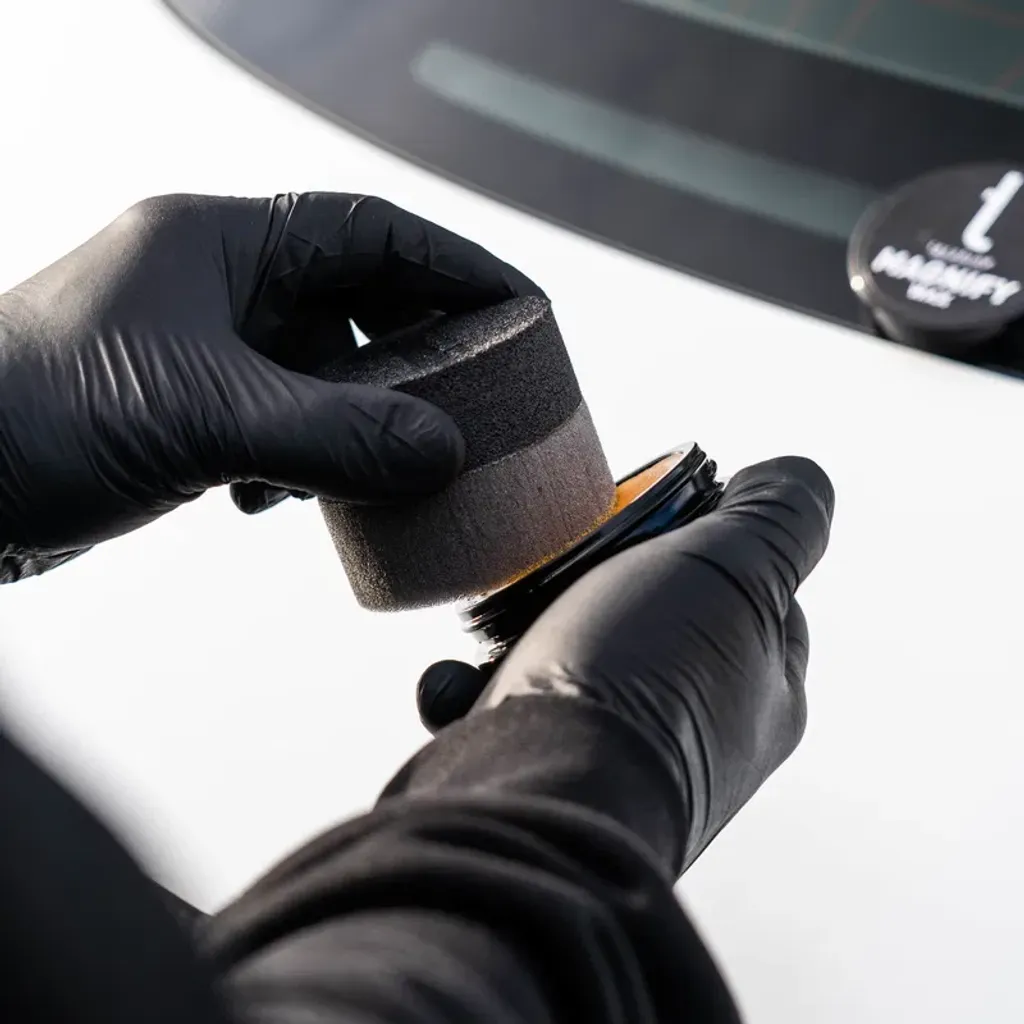 Magnify - Vax 100 ml är en härlig kombination av old school som möter framtidens glossy gloss! Riktig Carnubavax (naturlig), högpresterande polymerer och det som gör denna produkt helt unik i dagsläget, Plated Silica Powder! Utan att bli för mycket ”buzzwords” så har i alla fall Magnify - Wax riktigt balla filler -egenskaper (fyller lättare repor), oerhört lätt att lägga och riktigt trevlig hållbarhet. Självklart blir det massvis av glossy gloss och en grymt hydrofobisk yta (vattenavstötande)!