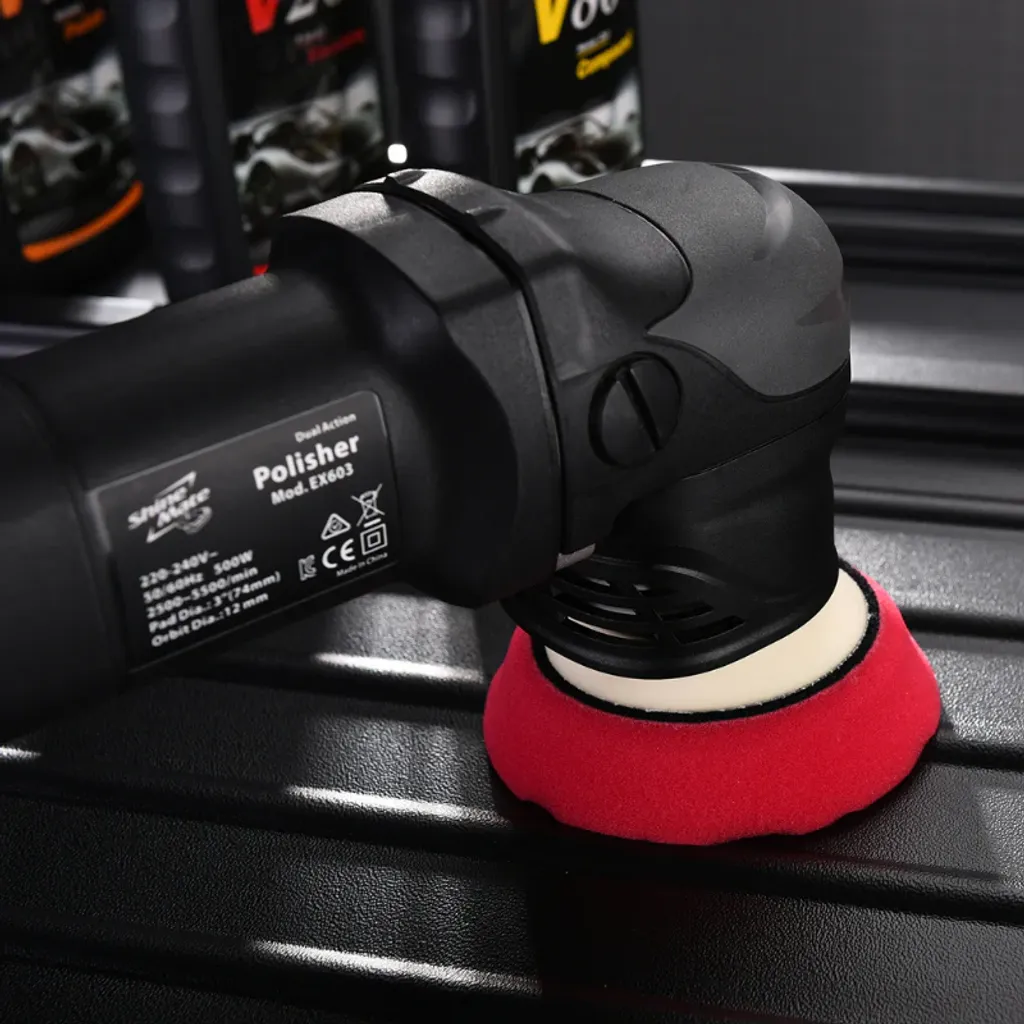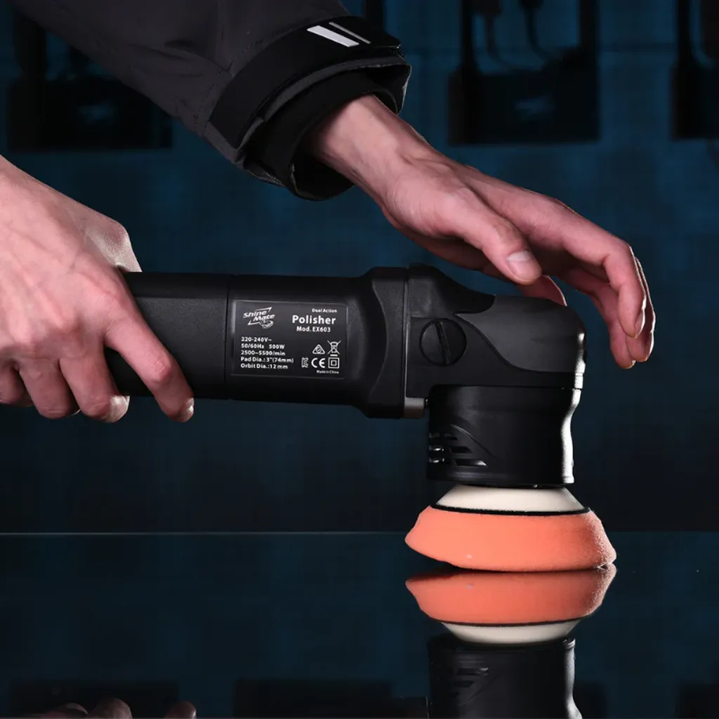 Det är nu möjligt att polera som med en roterande maskin, men med all säkerhet hos en dubbelverkande polermaskin. Med en kraftfull 750 W motor är Shinemate EX603, precis som sin större bror, den utmärkta EX605, en dubbelverkande polermaskin, tillverkad av högkvalitativa delar och precisionstillverkade CNC-komponenter. Detta gör den till en polermaskin som är kraftfull, jämn och tyst. Designad för professionella användare och bilvårds entusiaster.