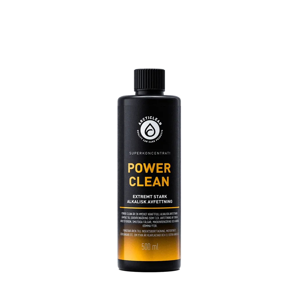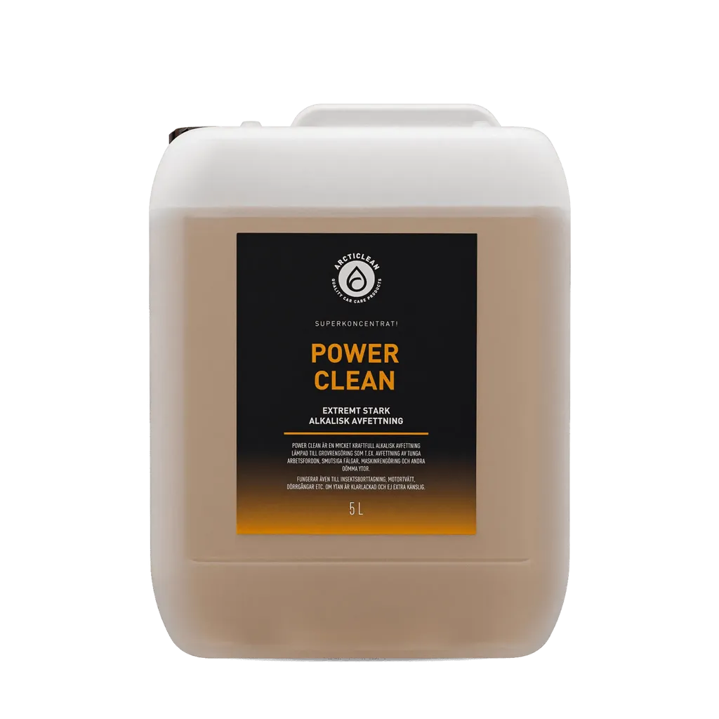 Power clean är en mycket kraftfull alkalisk avfettning lämpad till grovrengöring som tex: avfettning av tunga arbetsfordon, smutsiga fälgar, maskinrengöring och andra oömma ytor.