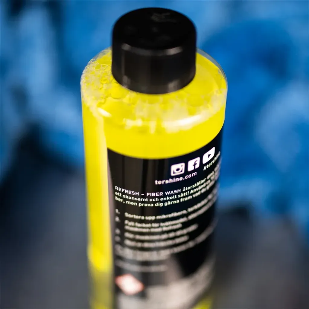 Refresh - Fiber Wash är ett mikrofibertvättmedel speciellt utvecklat för att på ett skonsamt men ändå oväntat effektivt sätt rengöra dina dukar och tvätthandskar. Jag vet jag förespråkat APC och alkaliska avfettningar, men det här är faktiskt en helt annan nivå på rengöring, utan att för den delen torka ut dukarna. Löser upp fetter, vaxer med mera och lyckats även få liv i dukar som man exempelvis kört Refract - Quick Coat eller någon annan keramisk spray i. Fungerar även ypperligt att rengöra polertrissor, vaxapplikatorer eller andra "pads" med.