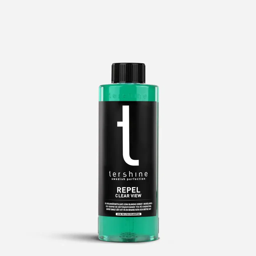 Repel - Glasbehanding är en tillsats för spolarvätskan som gör att rutan blir renare samt du får en mycket trevlig avrinning som gör körningen betydligt lättare i blötare förhållanden. Extremt smutt och fördelen är att det kommer gå åt mindre spolarvätska då rutan håller sig renare under en längre tid, samt givetvis blir det mycket lättare att köra i regn tack vare den hydrofobiska effekten som uppstår. Döljer även till viss del den inte helt goa doften av själva spolarvätskan med en lätt "skogsbärs-doft". 100ml är tänkt till 4-5 liter spolarvätska men vi har märkt att det även fungerar för mindre och mer, dvs du kan ju labba dig fram med halva flaskan först etc. om du önskar.