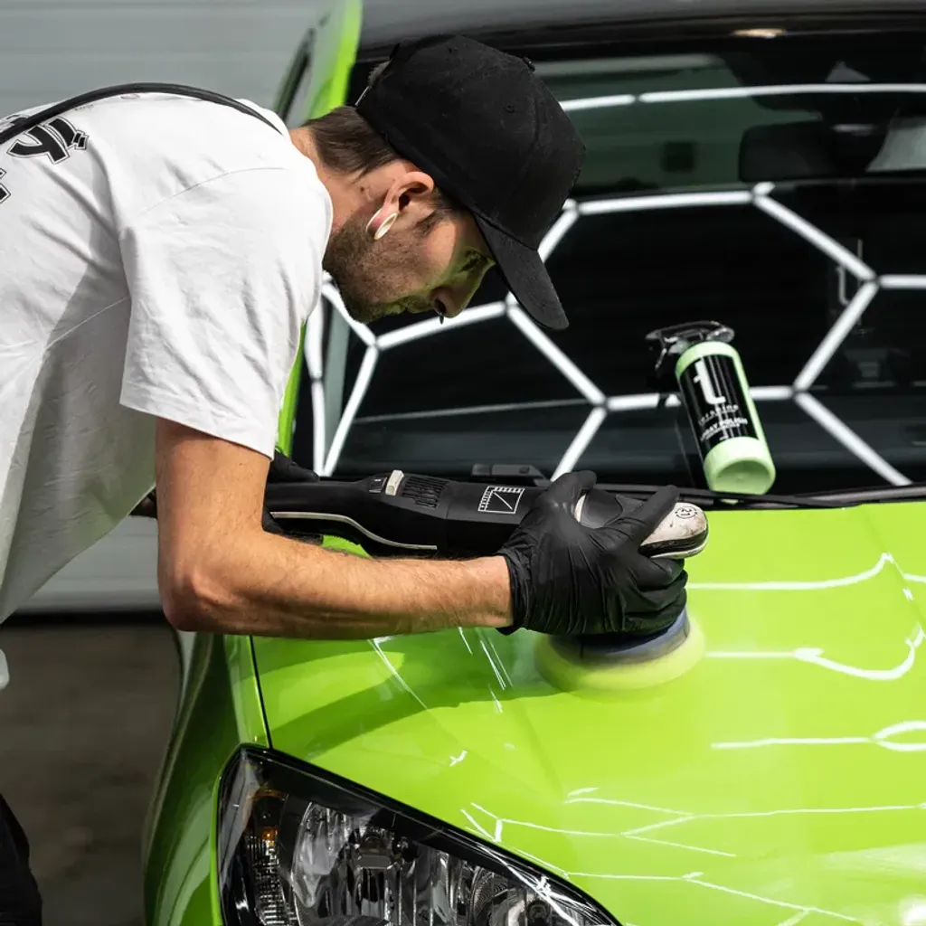 Ps. Med det här medlet är paden det som ”bestämmer” resultatet, så använd gärna två olika. En för grövre repor samt avsluta sedan men en finare, utan att addera mer medel. Går självklart att bara köra i ett steg också beroende på hur lacken är.