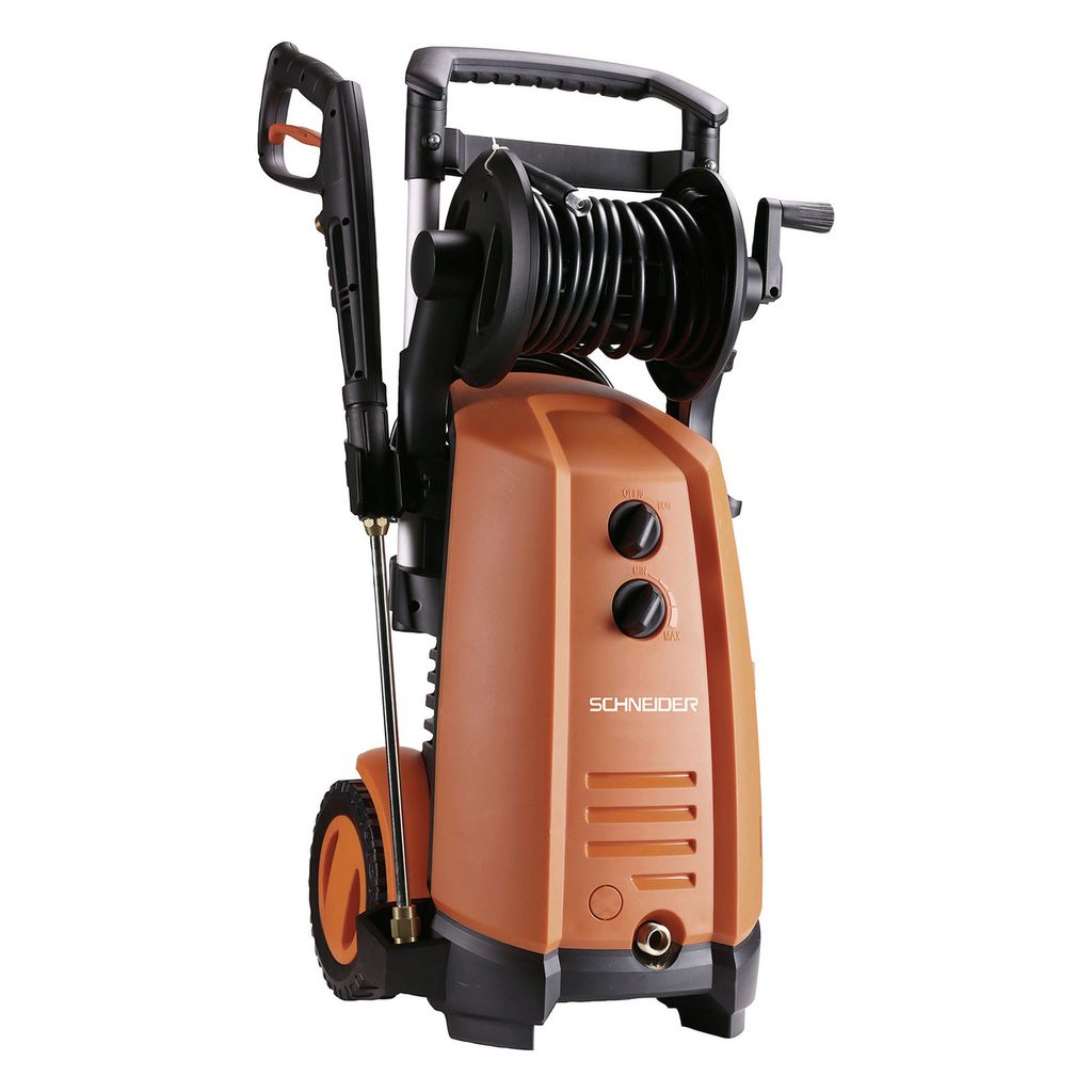 Schneider SC50024 är en smidig och effektiv högtryckstvätt på hjul, konstruerad för snabb och noggrann rengöring i både hem- och industrimiljö. Maskinen har ett arbetstryck på 180 bar och ett flöde på 522 liter i timmen, vilket ger ett effektivt rengöringsresultat utan att kompromissa med hanterbarheten. Utrustad med rostfria kolvar, Total Stop-system och justerbart rengöringsmedelsflöde. Maskinen levereras med spolhandtag i metall, 8 meter högtrycksslang på rulle med vev, integrerat 0,8 liters rengöringsmedelsbehållare, kabelhållare och fem olika munstycken – 0°, 15°, 25°, 40° och ett särskilt för dosering av kem. Med hållarna för både kabel och lans hålls utrustningen alltid organiserad. Ett robust val för allt från bilvård till rengöring av uteplatser och verktyg.