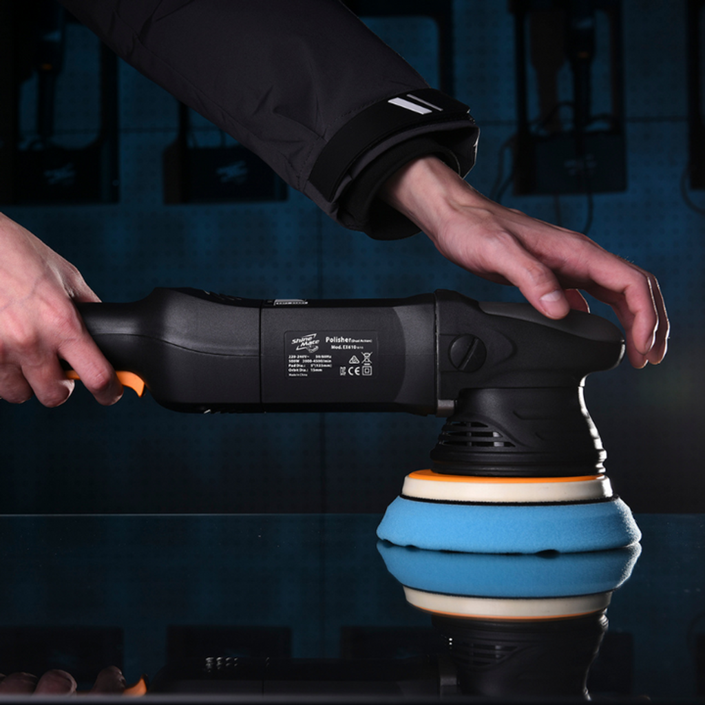 EX610-21 har en funktion som ger en mjuk start för att förhindra att polermedel skvätter över fordonet. Här kan du enkelt välja en hastighet på hjulet men också ha mer exakt kontroll med en progressiv avtryckare. Med varvtal mellan 2500-4500 kan hastigheterna varieras, lägre hastigheter för vaxning och högre hastigheter för polering. ShineMate EX610 är en oscillerande polermaskin av hög kvalitet med vibrationsdämpande teknik för jämnare drift. DustDevil flerhåls stödplatta hjälper även till att minska värme och uppkomsten av damm. Maskinen är ergonomiskt designad med ett mjukt grepp och huva för enkel och säker drift. Ett stöd vid maskinens huvud möjliggör också att den kan placeras säkert när den inte används.