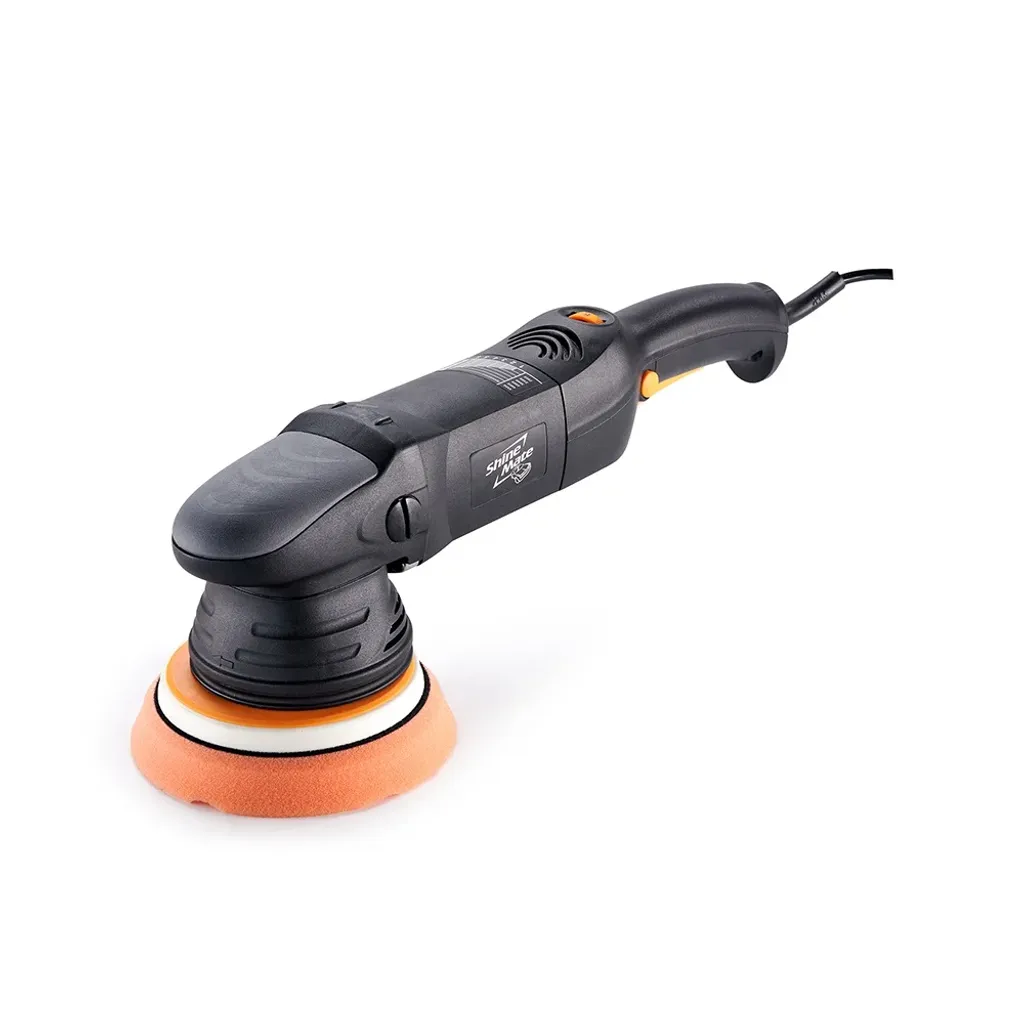 EX610 har en funktion som ger en mjuk start för att förhindra att polermedel skvätter över fordonet. Här kan du enkelt välja en hastighet på hjulet men också ha mer exakt kontroll med en progressiv avtryckare. Med varvtal mellan 2500-4500 kan hastigheterna varieras, lägre hastigheter för vaxning och högre hastigheter för polering. ShineMate EX610 är en oscillerande polermaskin av hög kvalitet med vibrationsdämpande teknik för jämnare drift. DustDevil flerhåls stödplatta hjälper även till att minska värme och uppkomsten av damm. Maskinen är ergonomiskt designad med ett mjukt grepp och huva för enkel och säker drift. Ett stöd vid maskinens huvud möjliggör också att den kan placeras säkert när den inte används.