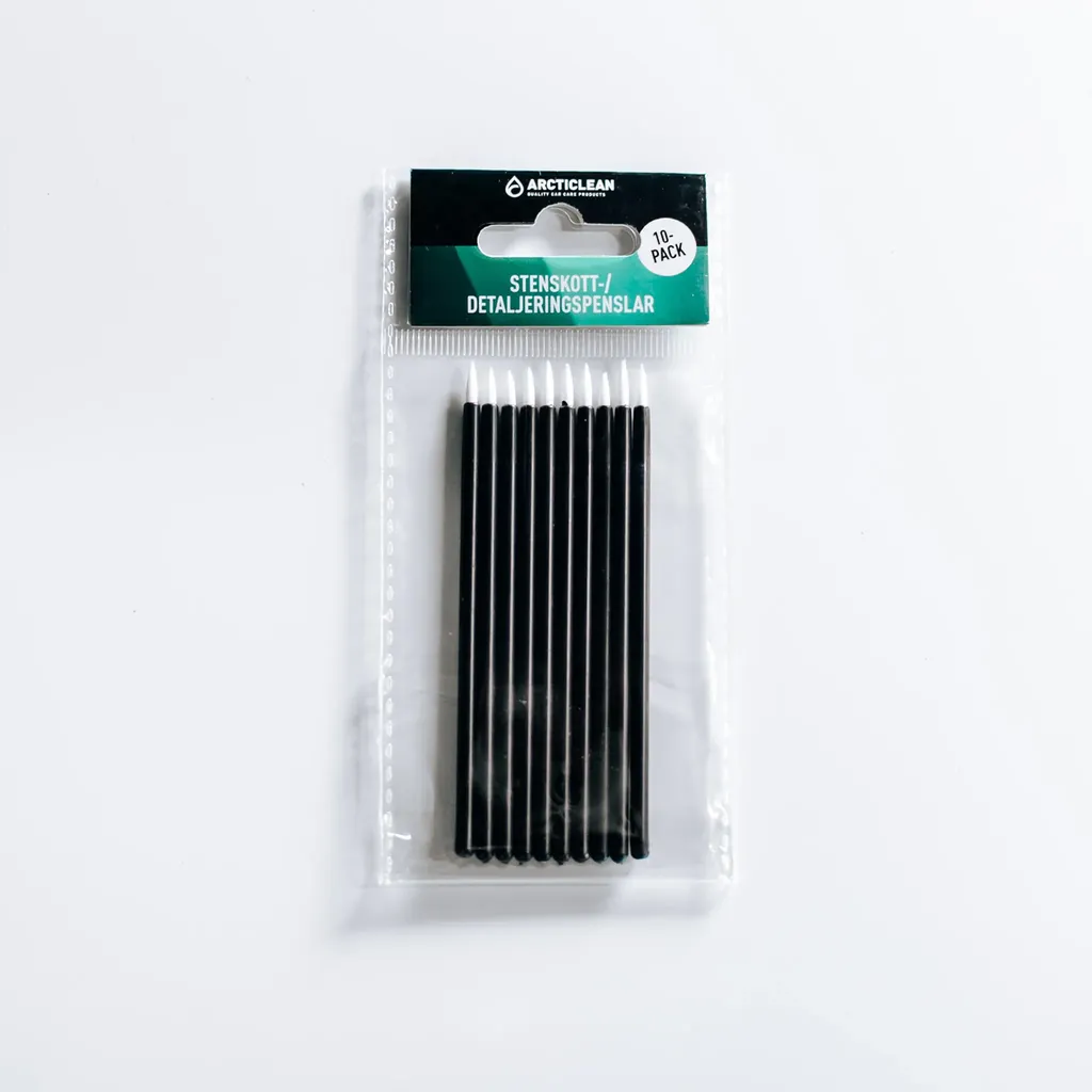 Smidiga penslar 10 pack för iläggning av stenskott och skador. Fin spets i ett fibermaterial som håller färgen bra. Kan rengöras så länge färgen inte härdat.