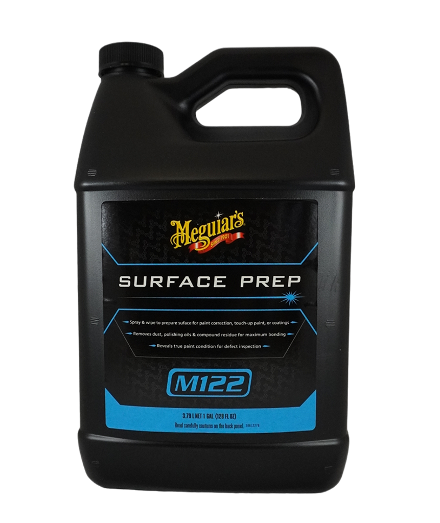 Meguiar’s Surface Prep M122 ser till att ytorna på ditt fordon är helt rena! Praktiskt taget alla polermedel lämnar ett fint skikt av oljiga rester som nästan är omöjligt att se. Dammpartiklar, fingeravtryck och andra föroreningar som naturligt finns i luften kan hamna på ytan. Dessa oljor och rester kan vara mycket utmanande att ta bort även med en mikrofiberduk av högsta kvalitet men med Meguiar’s Surface Prep M122 blir ytan helt ren! M122 är otroligt mångsidig och kan fungera som allt ifrån en slutkontroll-spray, en snabb detailer eller ett sista förberedelse-steg innan du applicerar ett lackskydd eller vid lackförbättring. Spraya en tunn dimma direkt på lacken och torka av med en ren mikrofiberduk så ser och känns en otroligt ren glans. Ytan är nu redo att använda någon form av skydd ovanpå. Spädning: Klar att använda, sprayflaska.