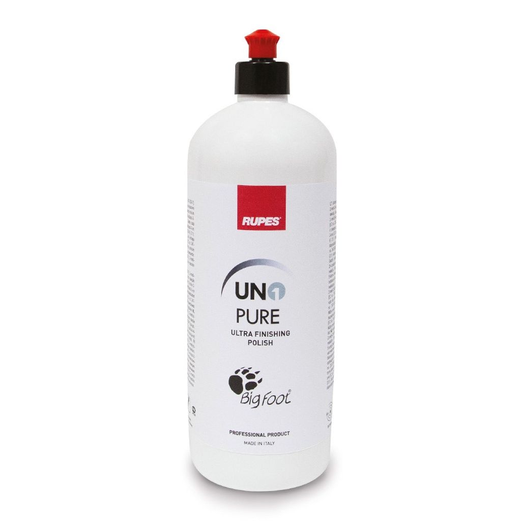 UNOPURE Ultra finishing compound är en polish av senaste teknologi, utvecklat och producerat av rupes kemistteam i Italien. UNOPURE skapar magi i form av glans på de mest svårjobbade lacktyper, även vid mörka kulörer. Oavsett om du har en roterande,kuggdriven eller oscillerande polermaskin så presterar unopure glans av absolut högsta optiska klarhet när den används med Rupes bigfoot polersystem, maskiner och trissor. Produkten innehåller inga fillers, den är lätt att använda och att torka av för bästa möjliga upplevelse. UNOPURE lämnar en yta Pure (ren) och helt redo för ett vax eller lackskydd. För bästa glans använd Rupes vit skumtrissa.